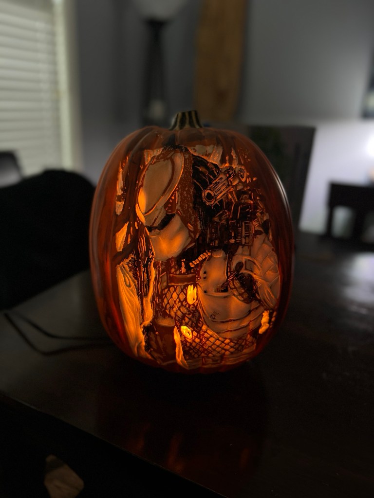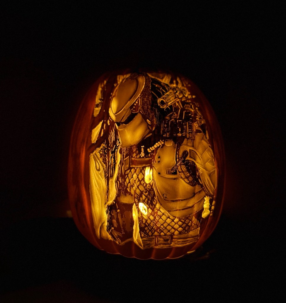 March 5, 2024July 10, 2024 Robert Bideshi Carvings Ultimate Hunter pumpkin $400 CAD message for purchase Share this: Share on X (Opens in new window) X Share on Facebook (Opens in new window) Facebook Share on LinkedIn (Opens in new window) LinkedIn Like Loading...